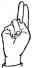 На ћирилици написано ЕЛЕНА СКОКИЋ састоји се из 11 слова [?]. Исписано ћириличном једноручном азбуком за глувонеме:
